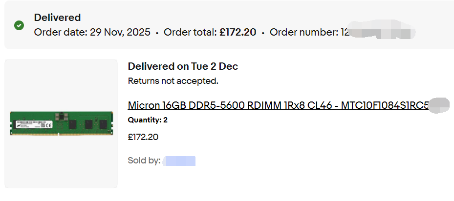 等国内快递期间顺手收了两条16GB RDIMM内存,基本是涨价前的价格,现在已翻倍。